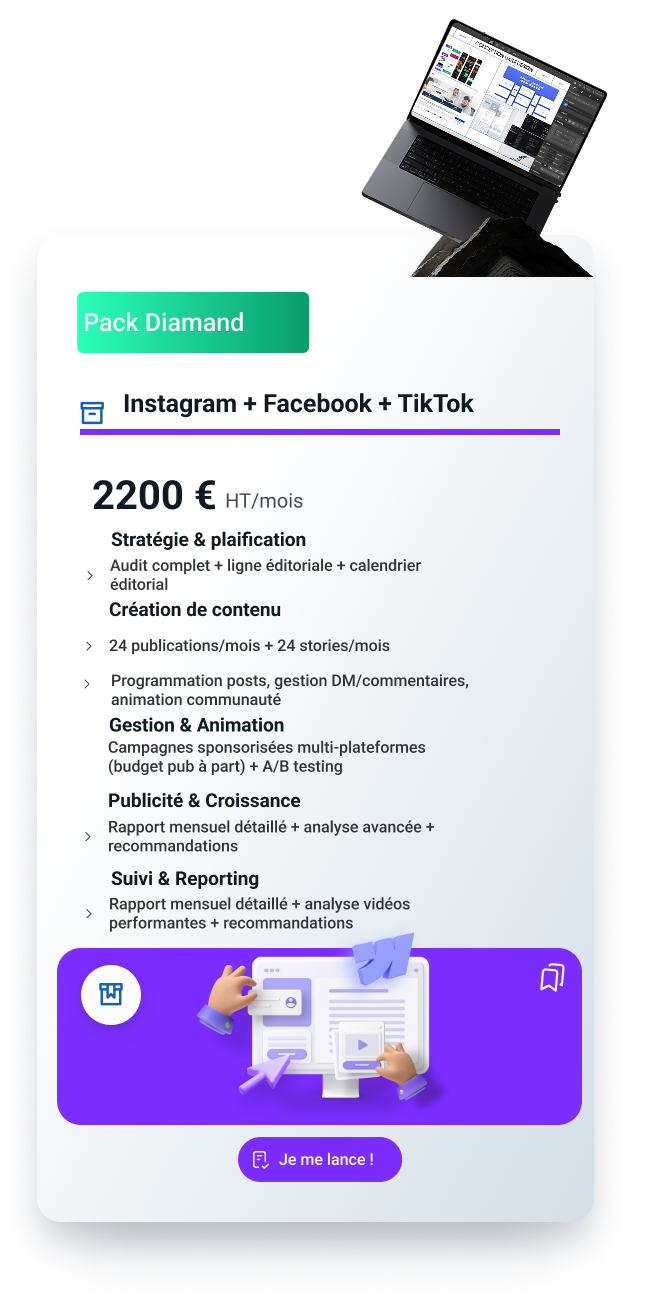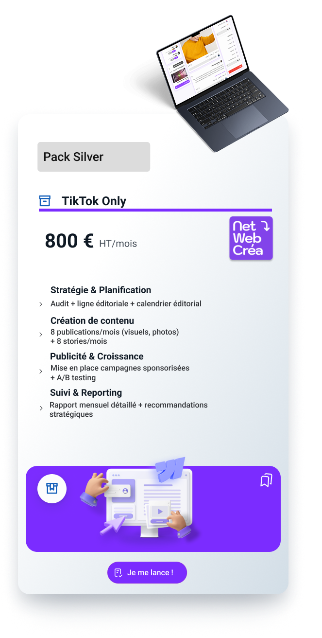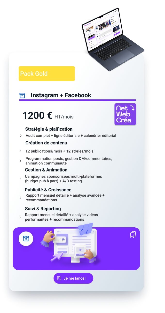 Chez Netwebcrea, nous aidons les entreprises à bâtir une présence forte et cohérente sur les réseaux sociaux. Grâce à nos services de Community Management sur mesure, vous engagez votre audience, développez votre visibilité et transformez vos abonnés en clients fidèles. Stratégie, création de contenu, animation… on s’occupe de tout pour que vous puissiez vous concentrer sur votre activité.